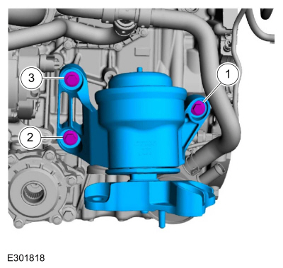 Install the RH engine mount and tighten the new bolts and nut in sequence shown.