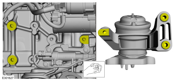Clean the LH engine mount-to-engine block mating surfaces of any dirt or foreign material prior to installation.