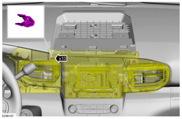 Release the clips and position the FCDIM and center instrument panel vents forward as an assembly.
