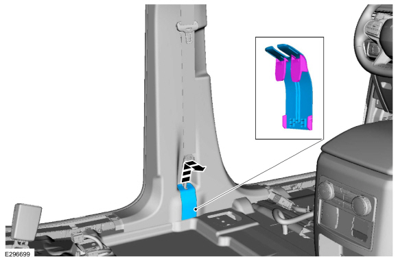 Release the tabs and remove the lower B-pillar trim panel cover.