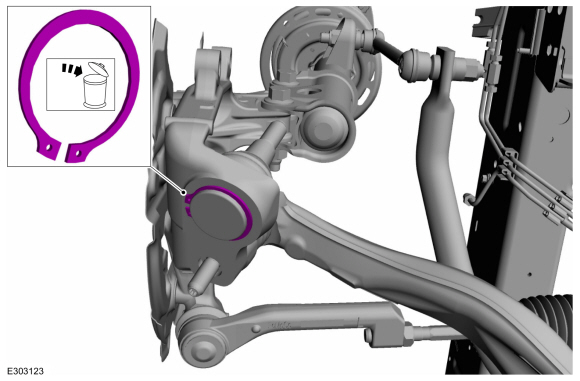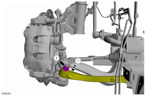 Removal and Installation - Wheel KnuckleWARNING: Do not place your arms on the airbag cover or through the steering wheel. Failure to follow this instruction could result in personal injury.