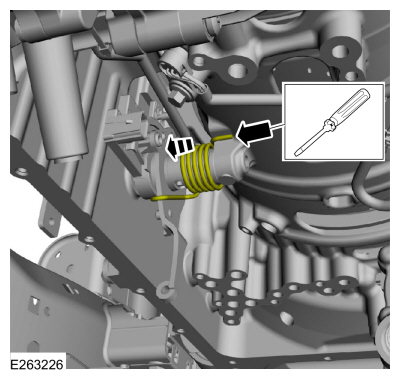 Using a punch, remove and discard the manual shaft-to-TR sensor roll pin (7G100).