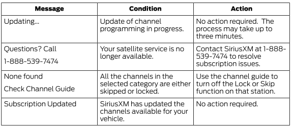 Note: SiriusXM reserves the unrestricted right to change, rearrange, add or delete programming including canceling, moving or adding particular channels, and its prices, at any time, with or without notice to you. Ford Motor Company shall not be responsible for any such programming changes.